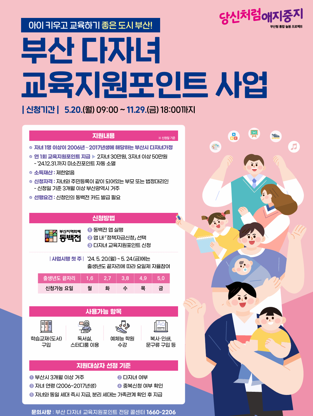 * 다자녀 교육지원포인트 사업 전담 콜센터 : 1660-2206