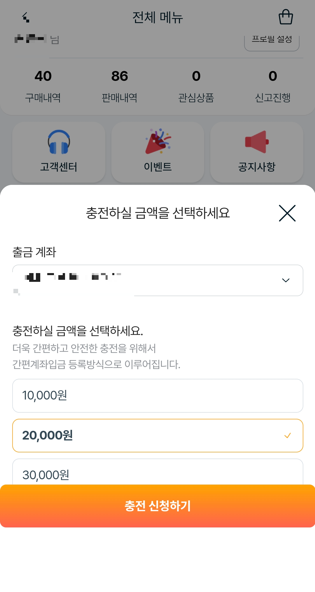 기프티캐시는 은행 계좌를 연결해서 충전한 뒤 사용하는 방식으로 만 원 단위로 충전할 수 있어요.