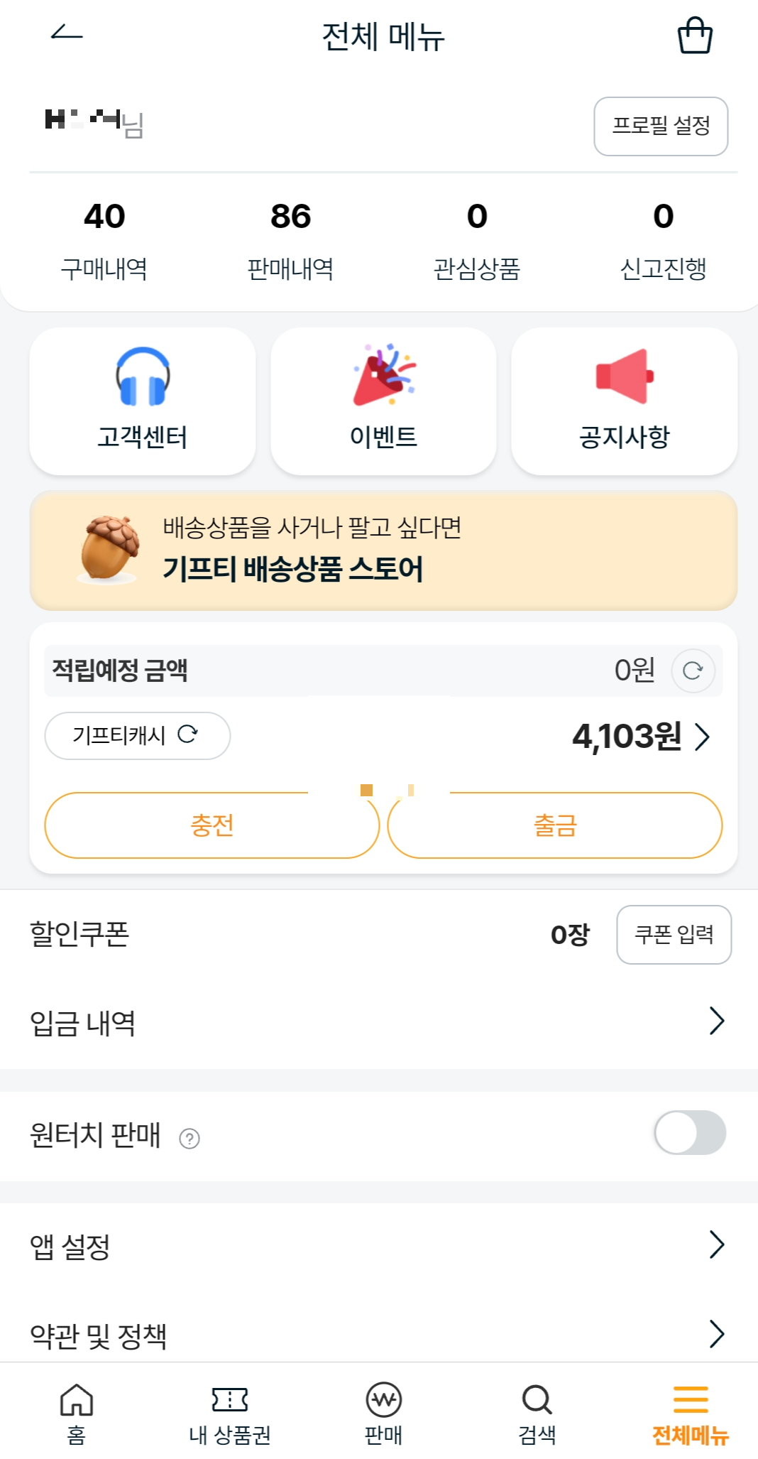 기프티콘 판매를 하는 경우에도 정산된 판매 대금이 기프티캐시로 적립이 됩니다.