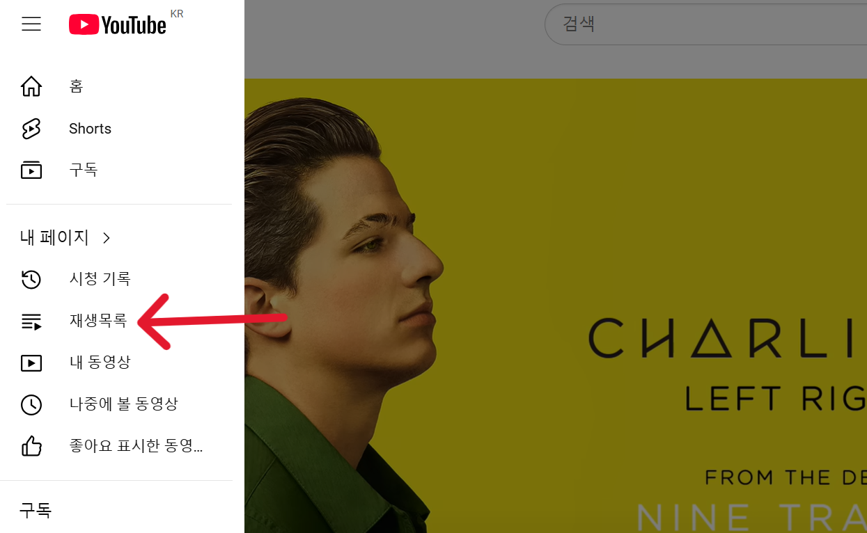 1️⃣ 메뉴( ≡ ) 에서 재생목록으로 이동