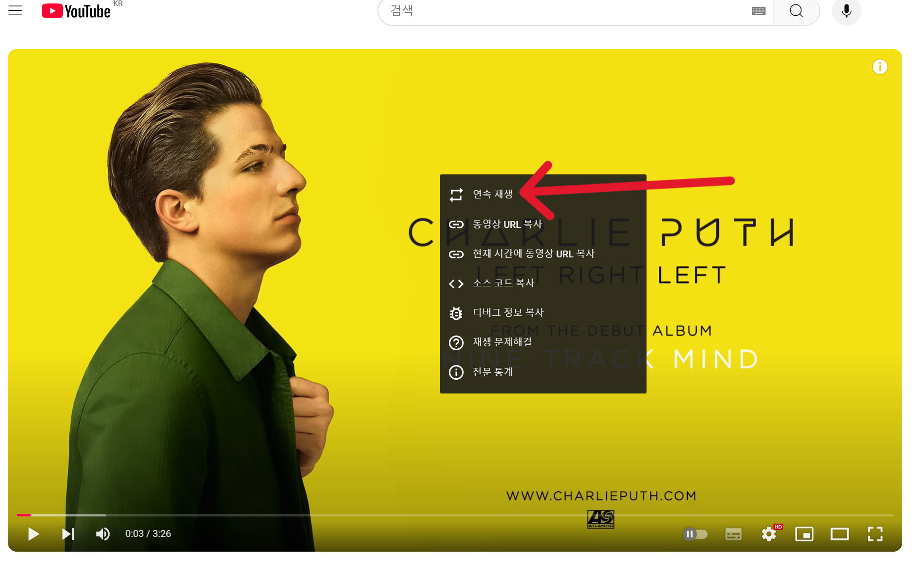 ☑️ 동영상 1개만 반복하는 방법 (PC)