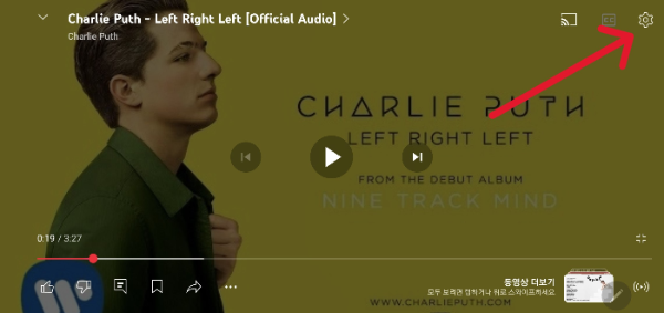 1️⃣ 반복할 동영상 상단 톱니바퀴 클릭