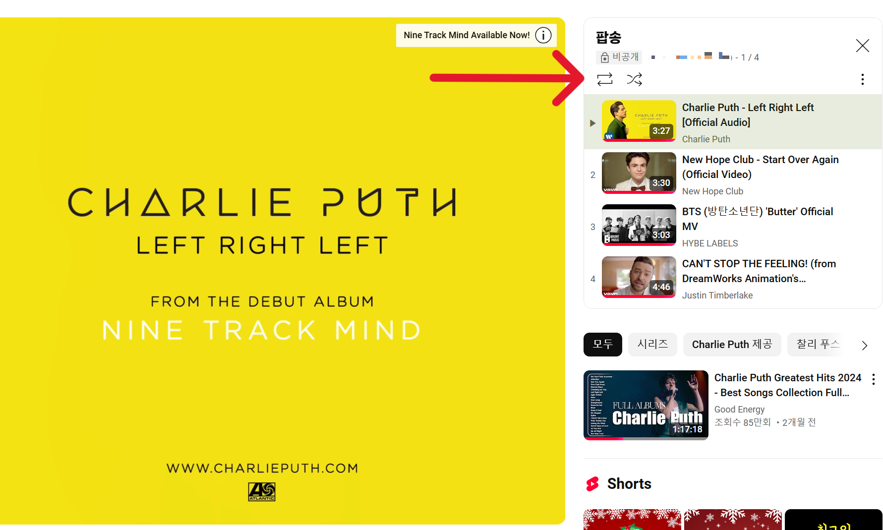 3️⃣ 반복재생 아이콘 클릭