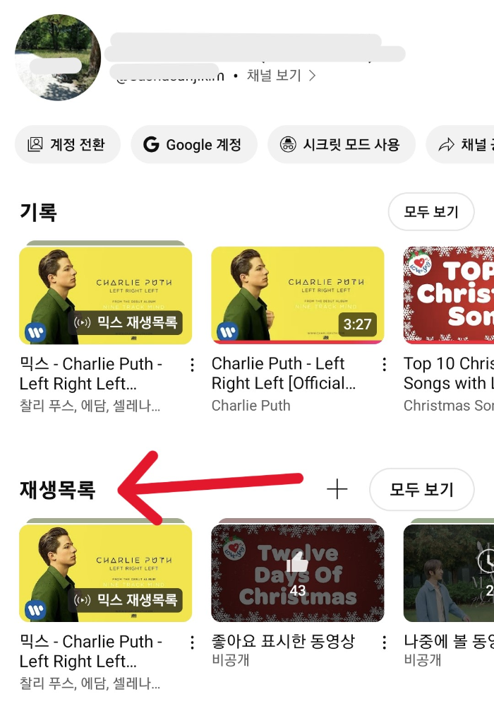 2️⃣ 재생목록에서 원하는 재생목록 클릭