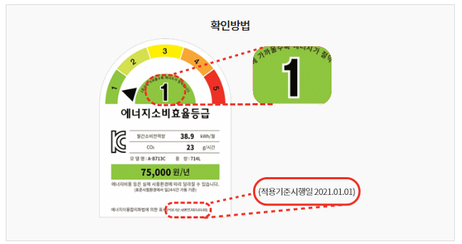 단, 반드시 에너지소비효율등급 라벨이 있어야 합니다.